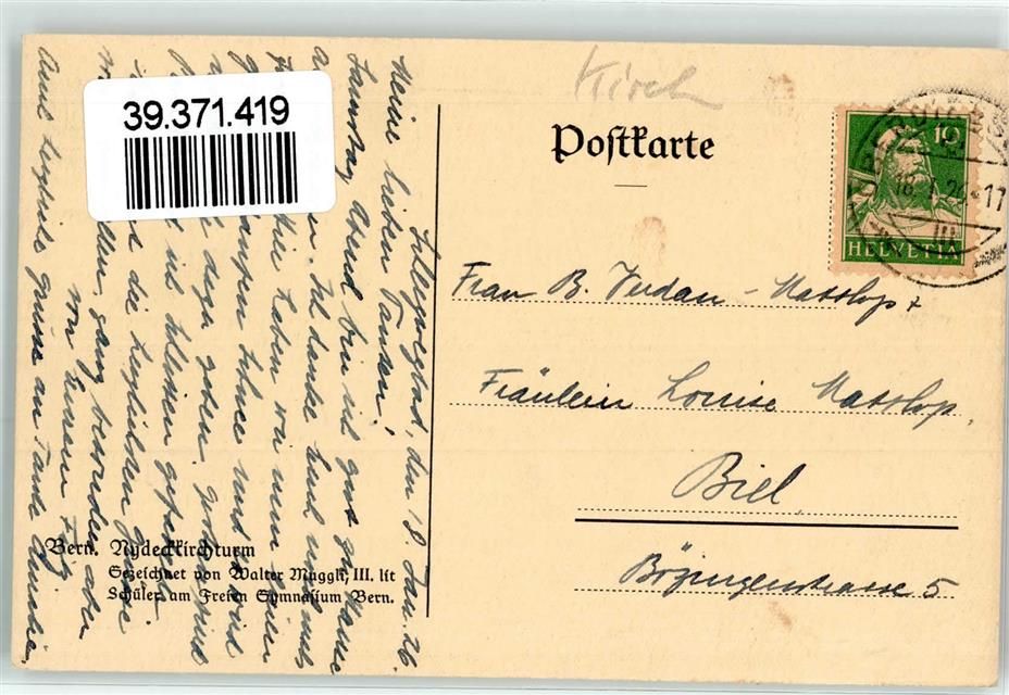 3000 Bern Berne - Nydeckkirchturm von Walter Muggli Schüler am freien Gymnasium