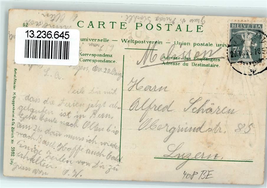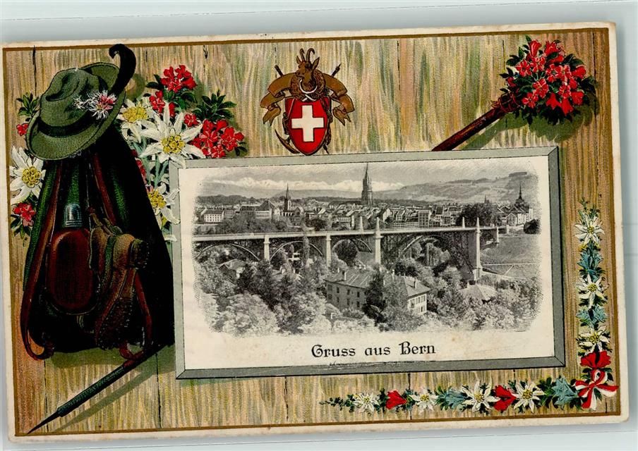 3000 Bern Berne Prägedruck Passepartout Rucksack Edelweiss