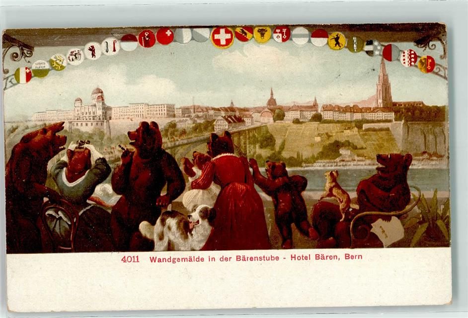 3000 Bern Berne - Wandgemälde in der Bärenstube Hotel Bären vermenschlicht