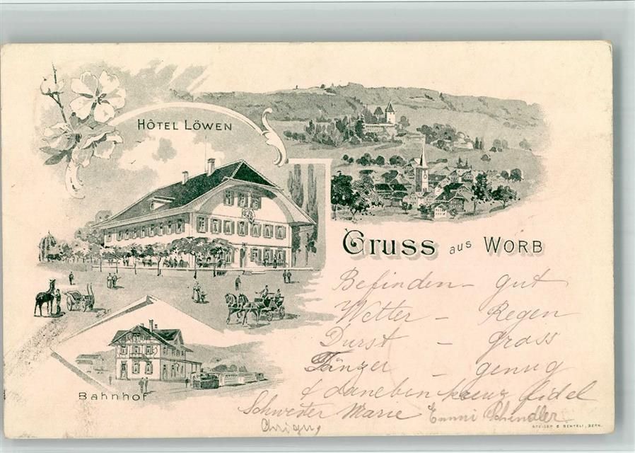 3076 Worb 1901 BOAKC Lithographie Hotel Löwen Bahnhof