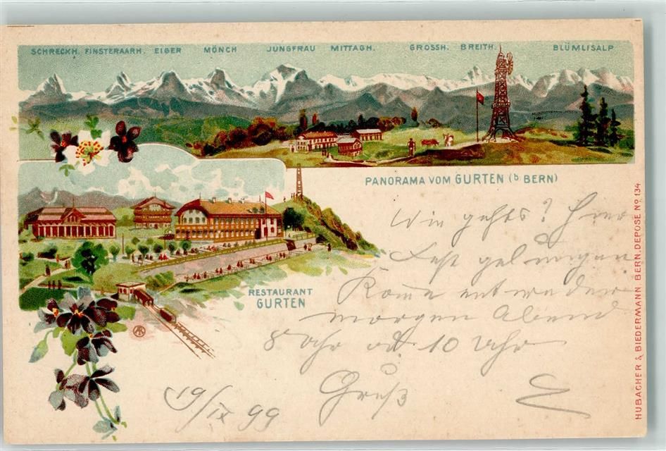3098 Köniz 1899 Lithographie Gasthaus Restaurant Gurten
