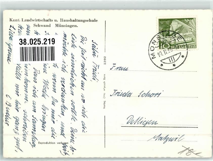 3110 Münsingen 1955 Foto AK Kant. Landwirtschafts- und Haushaltungsschule Schwand