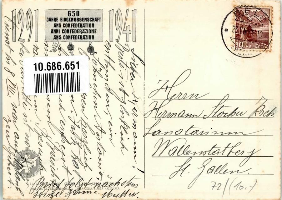 Belp, 650 Jahre Eidgenossenschaft 1291-1941 Ort lt. Stempel