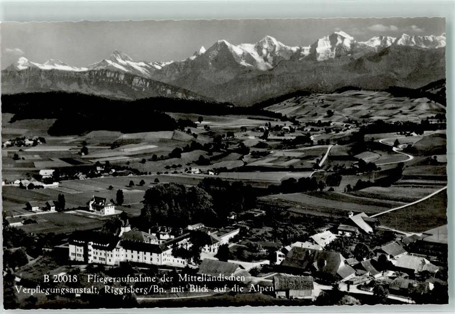 Riggisberg, Fliegeraufnahme der Mittelländischen Verpflegungsanstalt mit Blick auf die Alpen