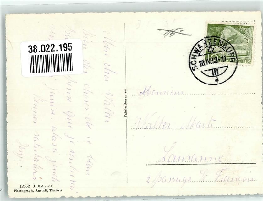 3150 Schwarzenburg 1952 Foto AK