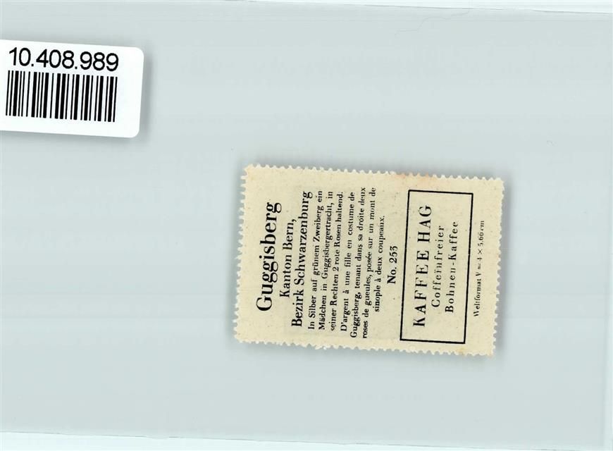 3158 Guggisberg - Vignette Wappen Kaffee Hag ca 1920-1940 Mädchen Tracht