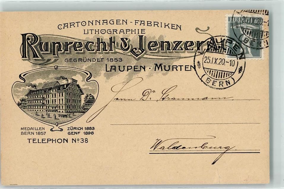 3177 Laupen BE 1920 Gebrauchsspuren Keine AK Reklame Zahlungsbestätigung Ruprecht und Jenzer