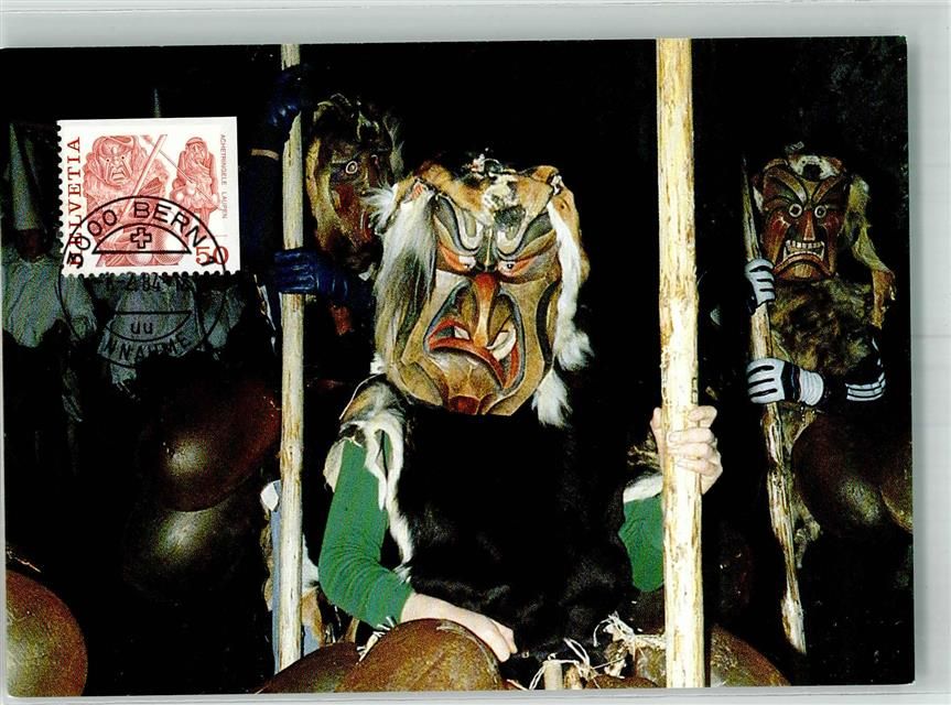 3177 Laupen BE 1984 Foto AK Masken Achetringele Briefmarke Bildseite