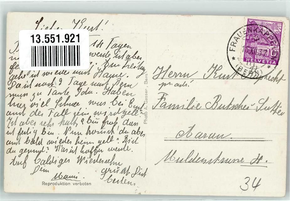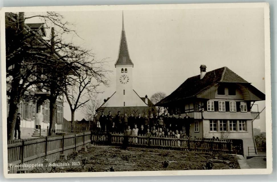 3202 Frauenkappelen Heggidorn 1937 Foto AK Kirche Schule