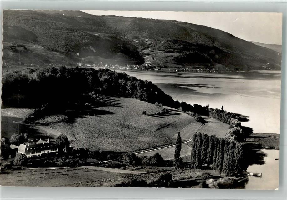 3235 Erlach Foto AK Fliegeraufnahme Hotel St. Petersinsel Bielersee
