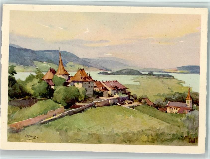3235 Erlach Künstlerkarte sign. Marc Bielersee