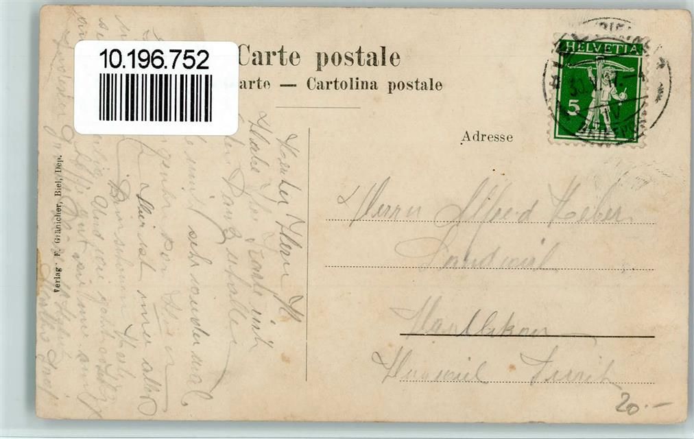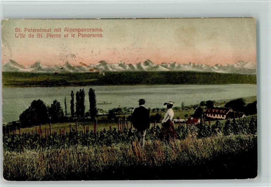 3235 St. Petersinsel Erlach 1917 - mit Alpenpanorama Morgenrot