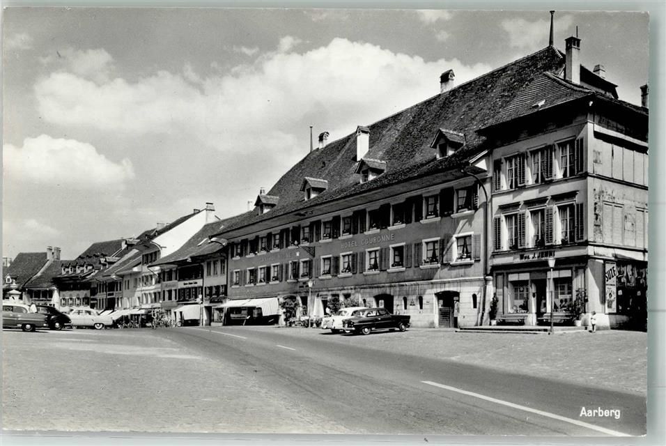 3270 Aarberg Foto AK Auto Geschäft Marktszene Hotel Couronne