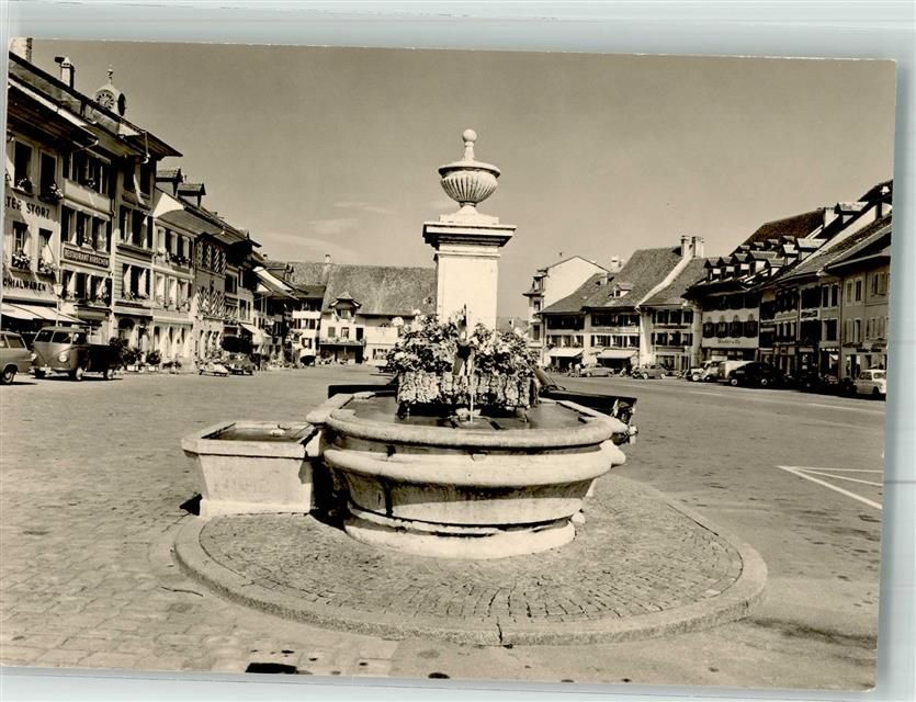 3270 Aarberg Foto AK Denkmal Brunnen Marktplatz Auto