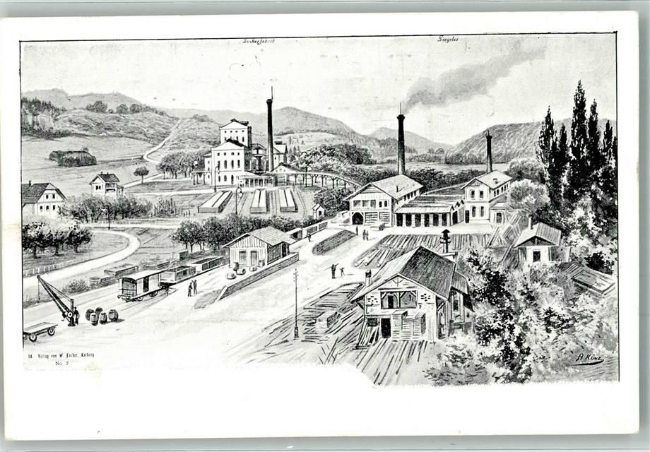 3270 Aarberg Künstlerkarte sign. Küne A. Zuckerfabrik Eisenbahn