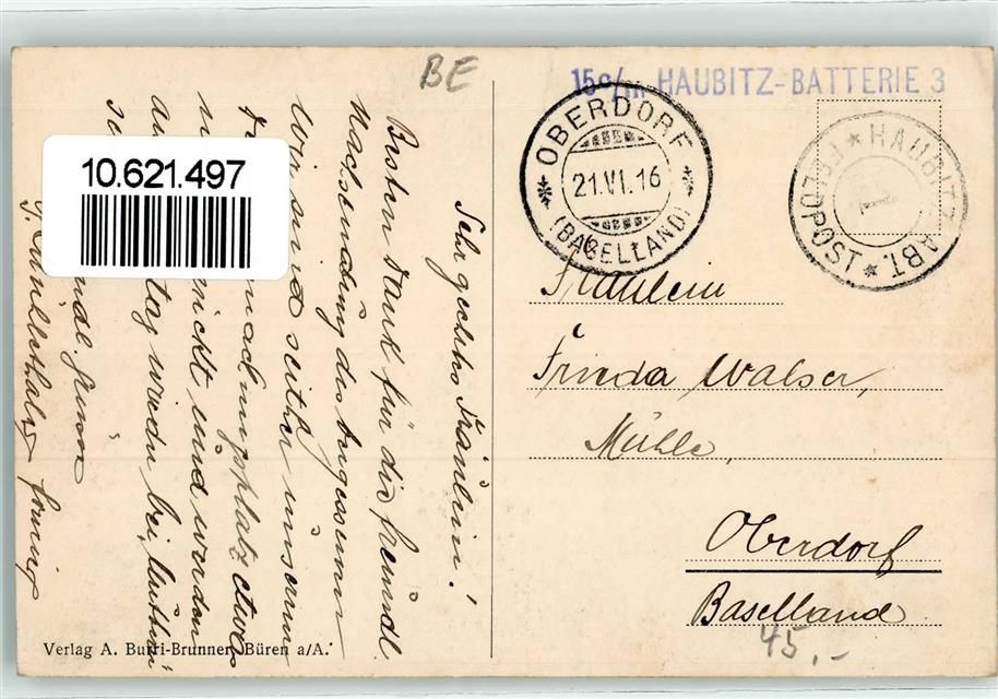 3294 Büren an der Aare 1916 - Feldpost Haubitz Abt 1