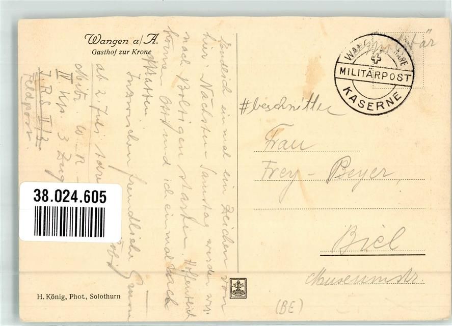 Wangen an der Aare, Gasthaus zur Krone Auto Feldpost Militärpost Kaserne