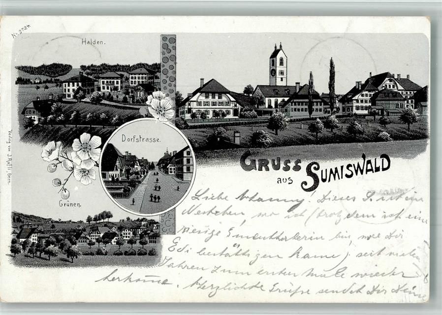 3454 Sumiswald 1899 BOAKC Lithographie Halden Grünen Dorfstraße