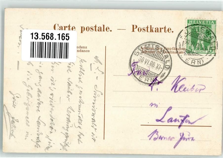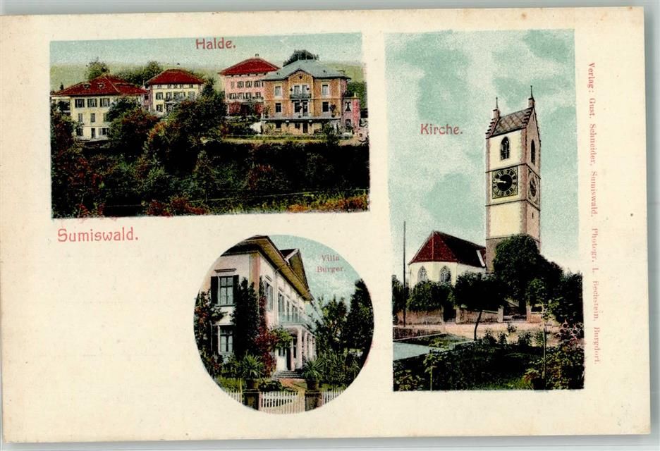 3454 Sumiswald 1908 Foto AK Kirche Pension