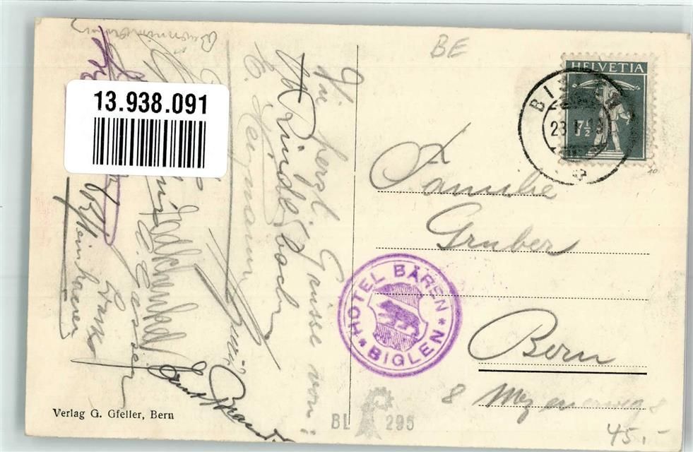 3507 Biglen - Alpen Kirche Stempel Hotel Bären