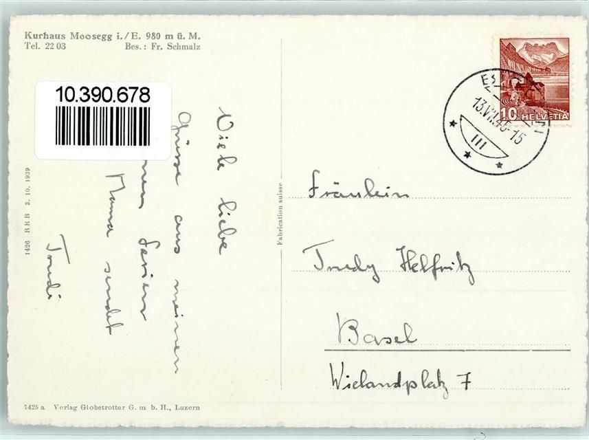 3543 Emmenmatt 1945 - Kurhaus Moosegg Blick auf Eiger Mönch und Jungfrau
