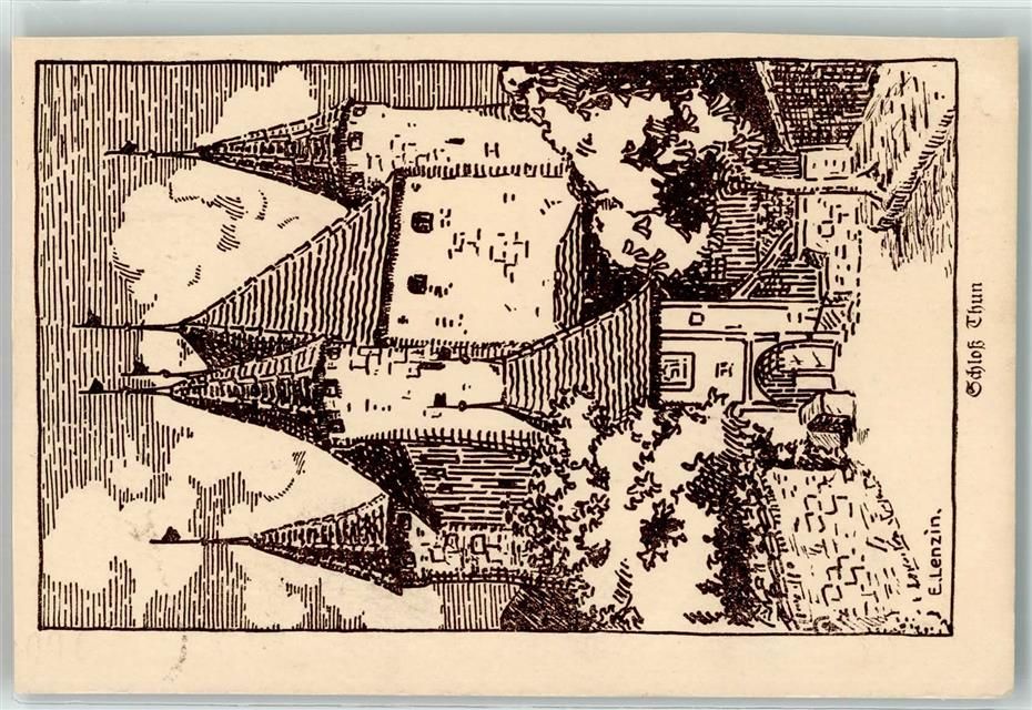 3600 Thun Künstlerkarte Schloss sign. E Lenzin