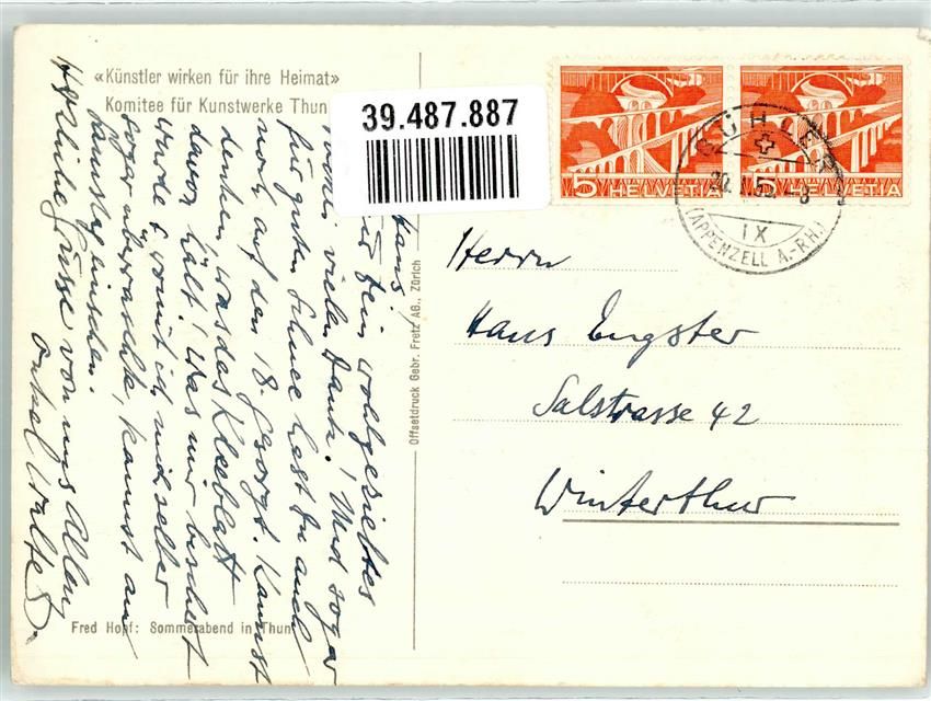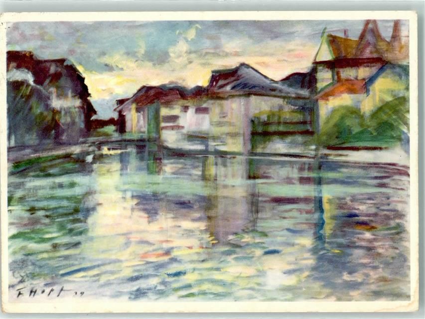 3600 Thun Künstlerkarte sign.F.Hopf Sommerabend