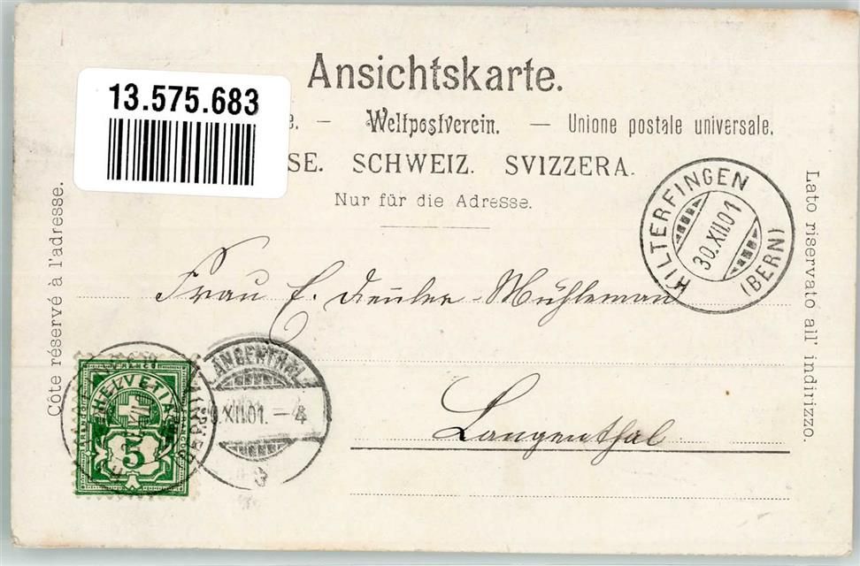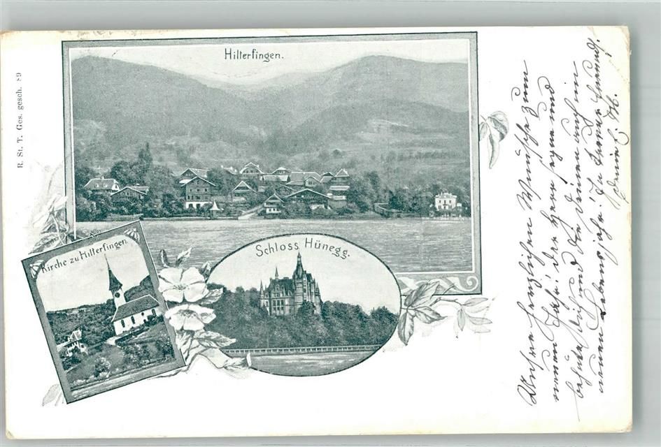 3652 Hilterfingen 1901 Gebrauchsspuren Schloss Hünegg Kirche