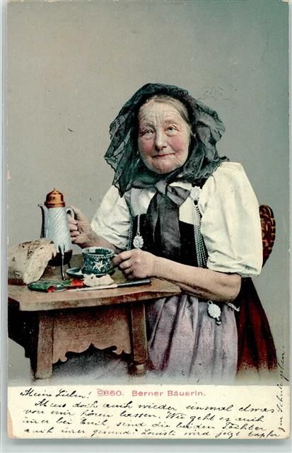 3652 Hilterfingen 1906 - Bäuerin Tracht Ort lt. Stempel