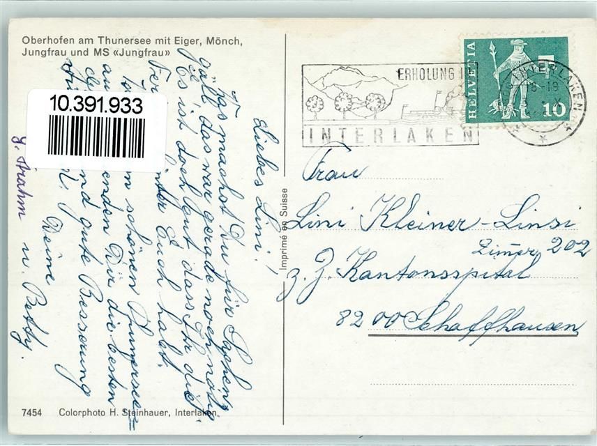 3653 Oberhofen am Thunersee - Thunersee Motorschiff Jungfrau Eiger Mönch Jungfrau