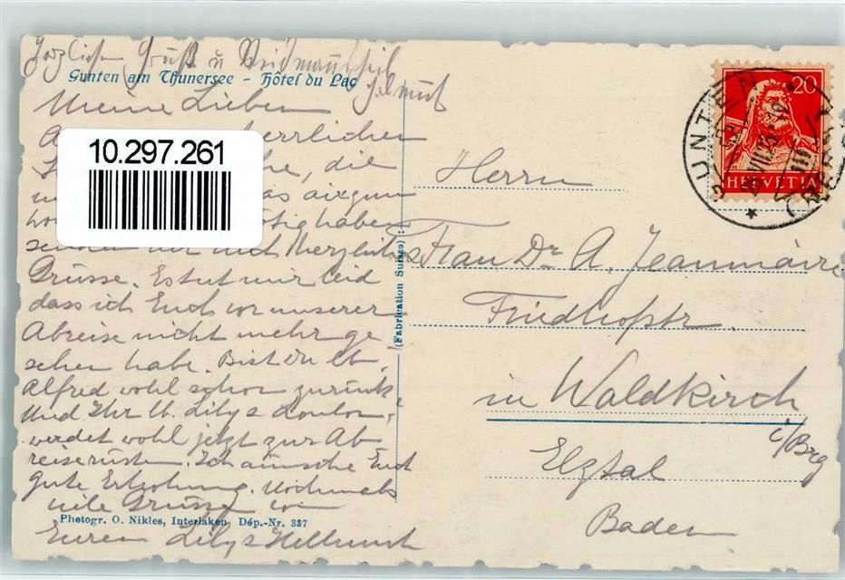 3654 Gunten 1925 Foto AK Hotel du Lac AK