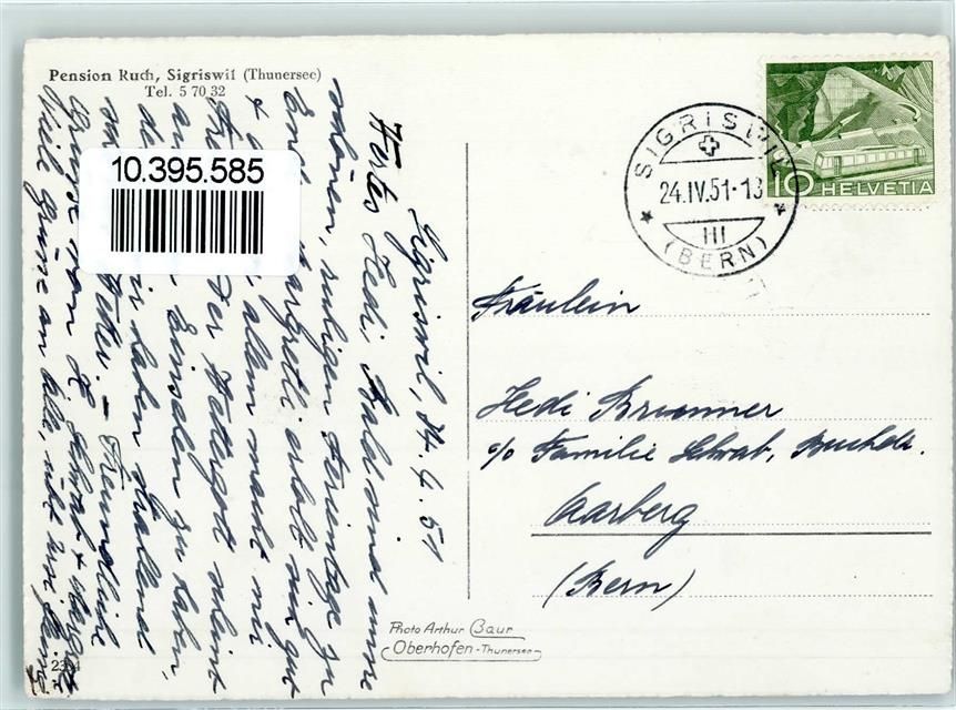 3655 Sigriswil 1951 - Pension Ruch Thunersee