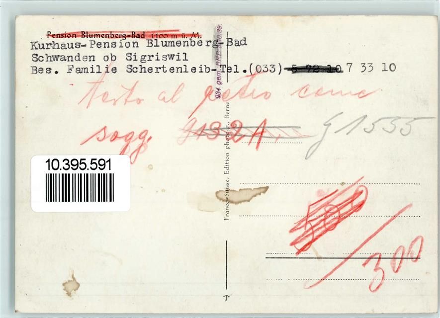 3657 Schwanden Sigriswil - Kurhaus Pension Blumenberg Bad Schwanden ob Sigriswil