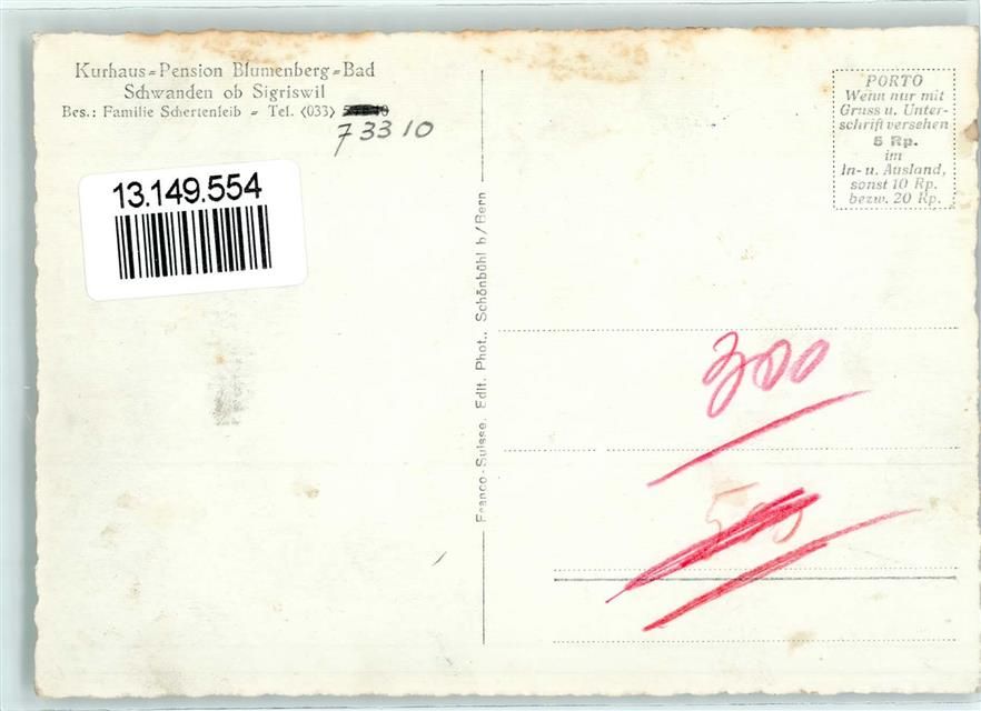 3657 Schwanden (Sigriswil) - Kurhaus Pension Blumenbergbad