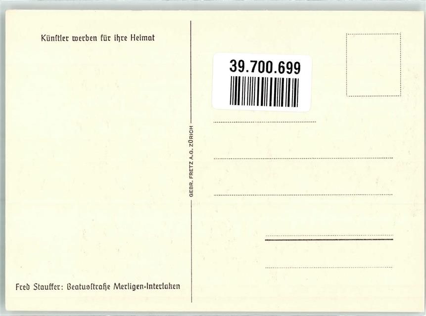 3658 Merligen Künstlerkarte sign. Stauffer Beatusstrasse