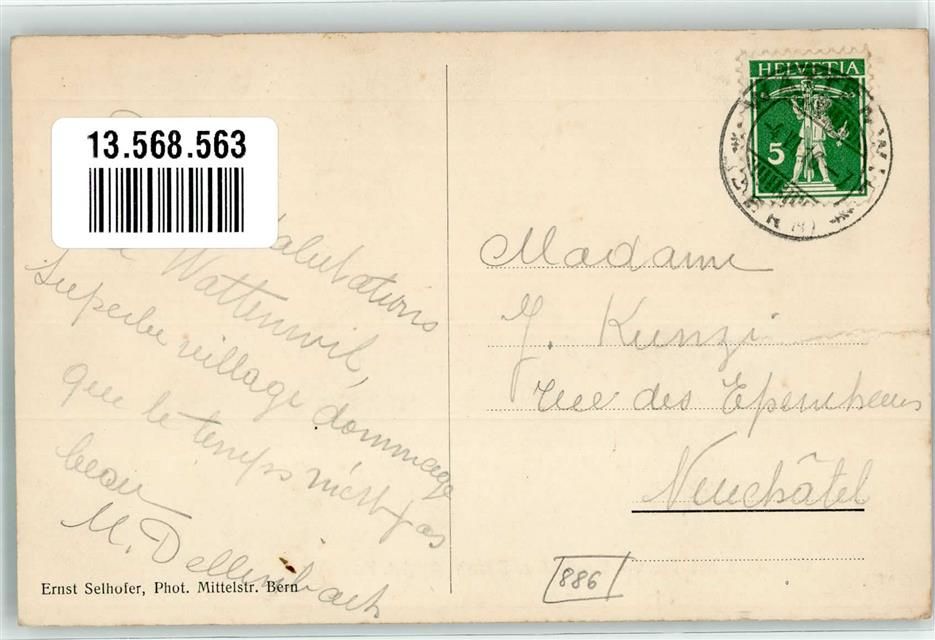 3665 Wattenwil 1916 Gebrauchsspuren Gasthaus zum Bären