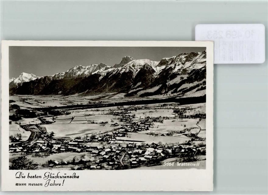 Wattenwil, Foto 10cm x 7cm Fliegeraufnahme Neujahrswunsch