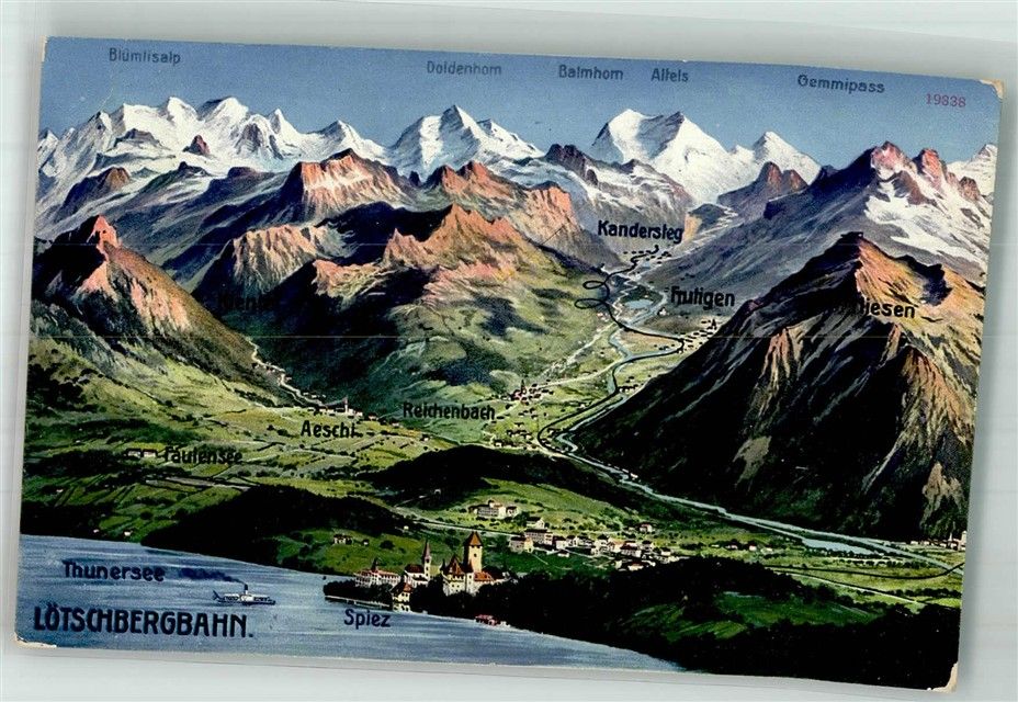 3700 Spiez 1913 Foto AK Vogelschau Thunersee Lötschbergbahn