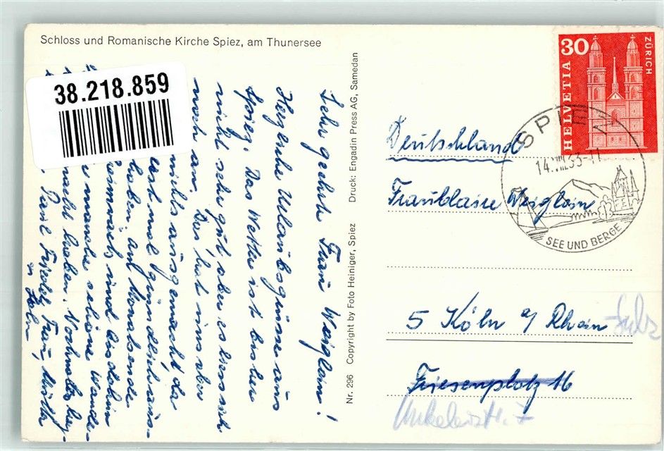 3700 Spiez 1933 Foto AK Kirche Schloss Thunersee