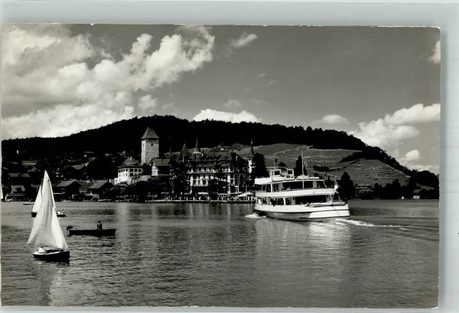 3700 Spiez Foto AK Hafen Schloss Motorschiff Jungfrau