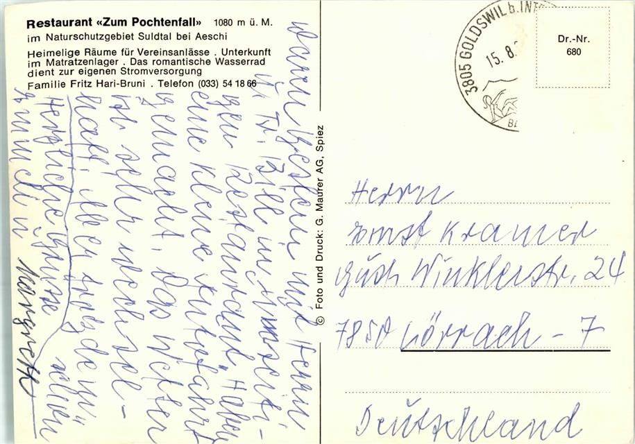 3703 Aeschi b. Spiez Gebrauchsspuren Gasthaus Zum Pochtenfall Mühle