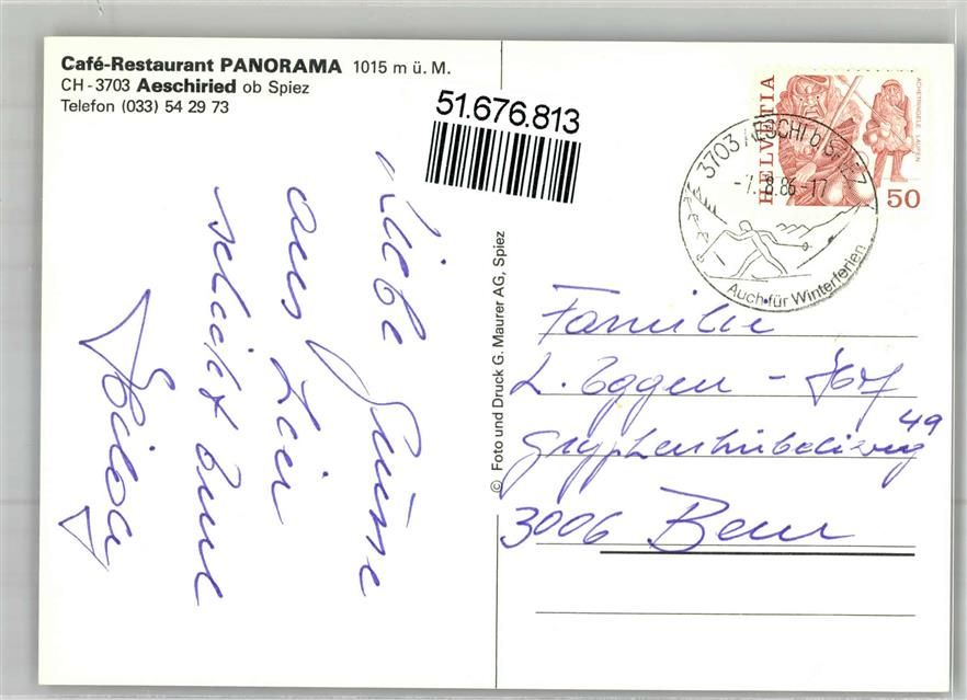 3703 Aeschiried 1986 - Cafe Gasthaus
