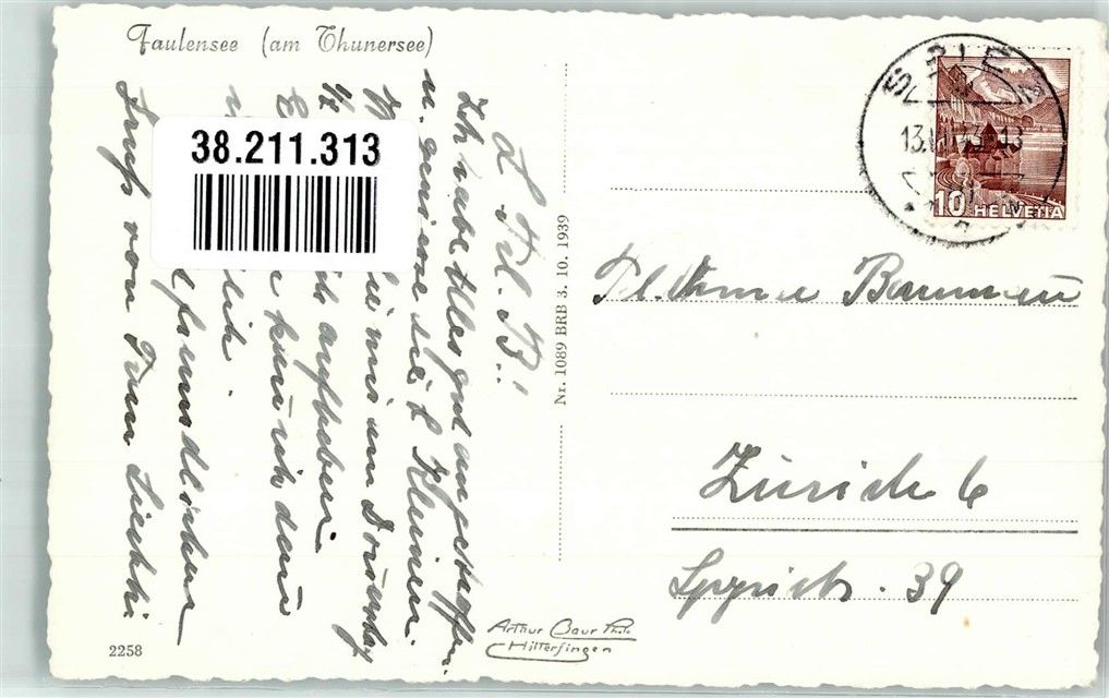 3705 Faulensee 1943 Foto AK Dampfschiff Thunersee