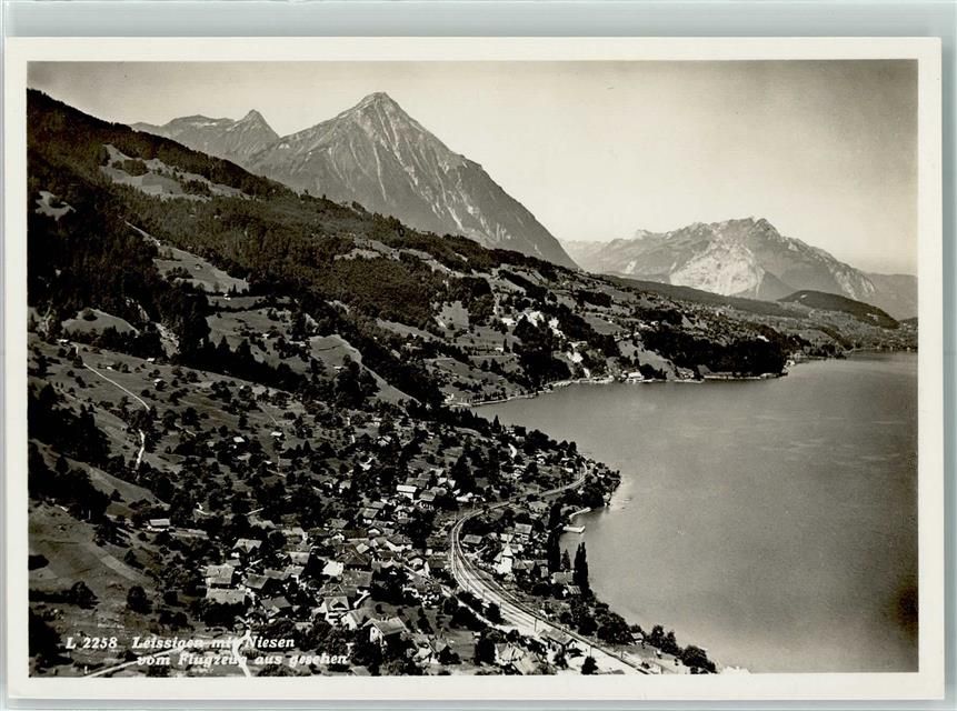 Leissigen, Fliegeraufnahme Leissigen mit Niesen Thunersee