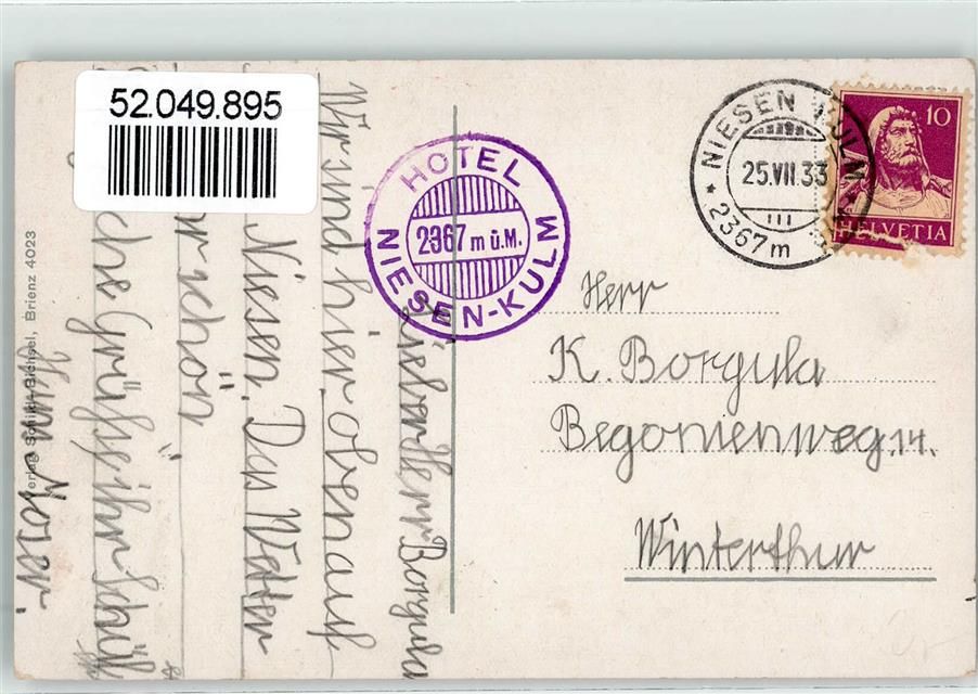 3711 Mülenen - Schreckhorn Eiger Mönch Jungfrau Niesen-Kulm Plattform