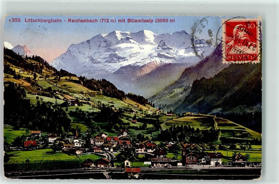 3713 Reichenbach im Kandertal 1916 Gebrauchsspuren Lötschbergbahn mit Blüemlisalp Bahnhof
