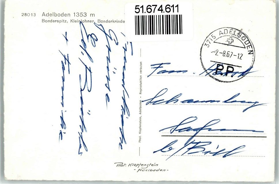 3715 Adelboden BE Foto AK Bonderspitz Kleinlohner AKU1