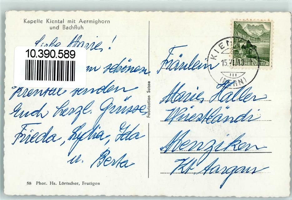 3723 Kiental 1940 - Kapelle mit Aermighorn und Bachfluh