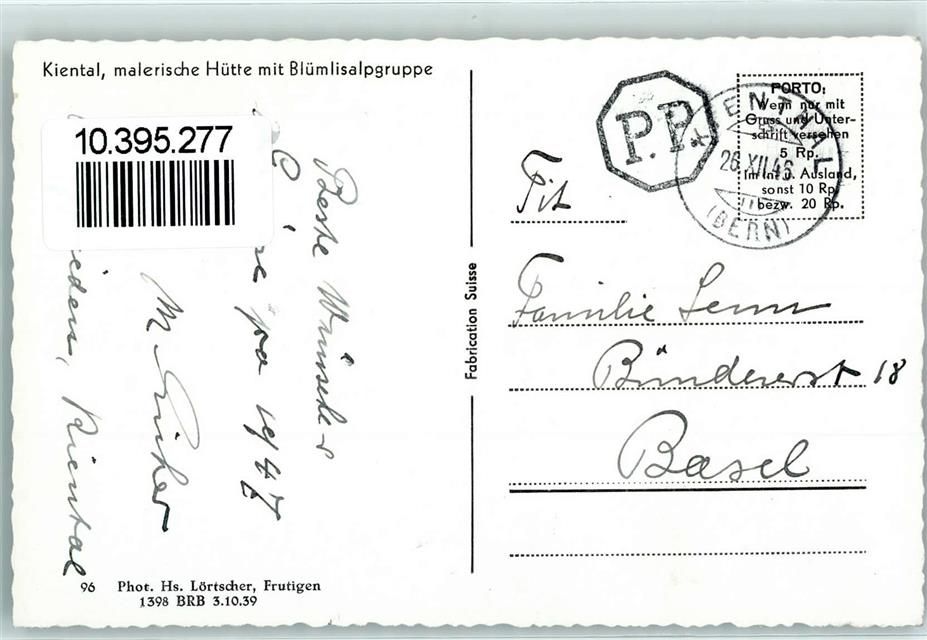 3723 Kiental 1946 - malerische Hütte mit Blümlisalpgruppe