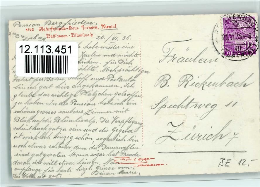 3723 Kiental - Naturfreundehaus Gornern Kiental Büttlassen-Blümlisalp